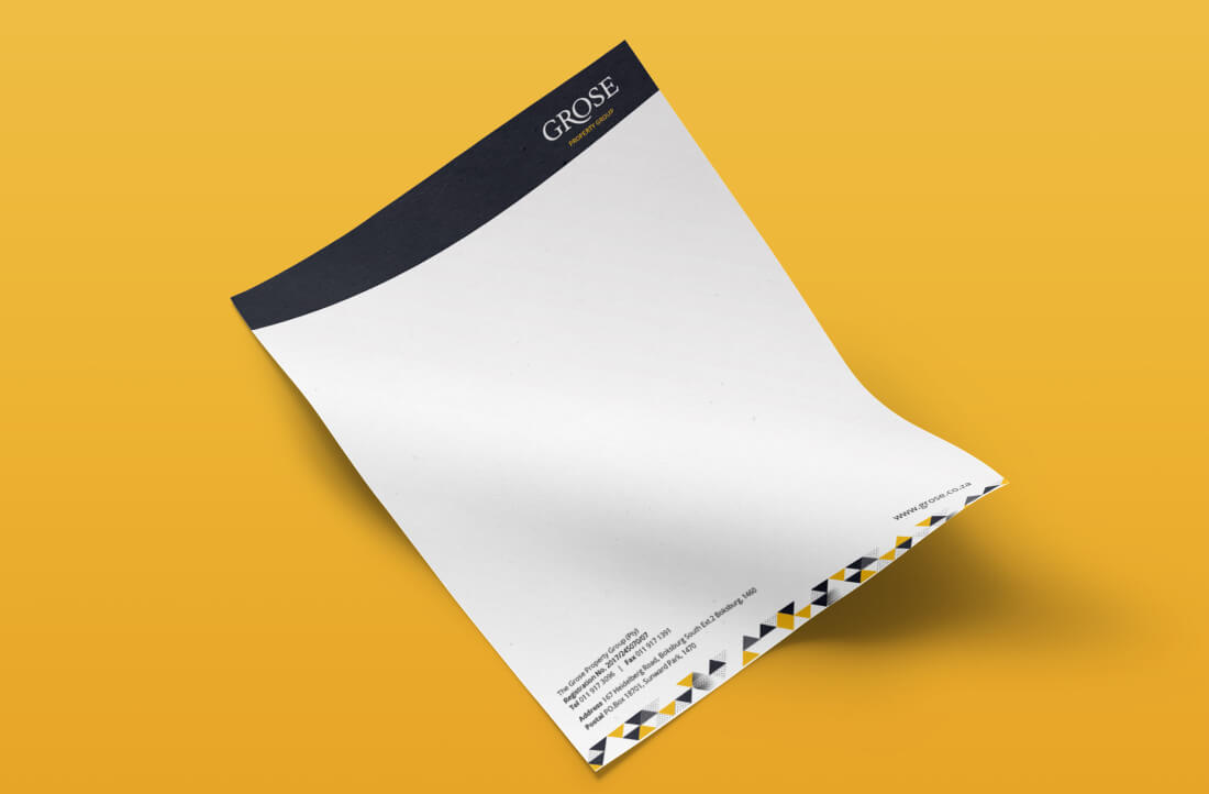 We designed a fresh and contemporary logo as well as business cards, sale boards and a letterhead for Grose Property Group.
